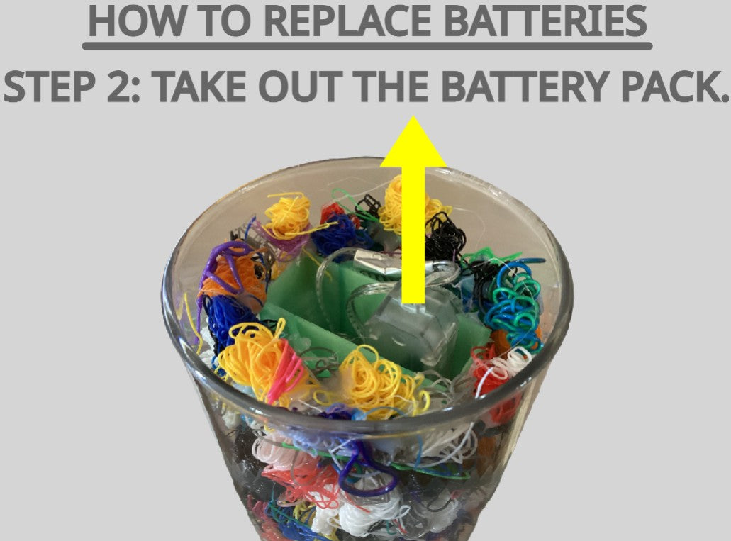 This is a glass jar filled with abstract 3D-printed shapes. There are LED lights hidden behind these shapes that make the jar glow when it's dark, and you can change the lighting effects using the remote. If the lights stop working, then the battery probably ran out. See the instructions on this page if you aren't sure how to replace the batteries.