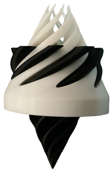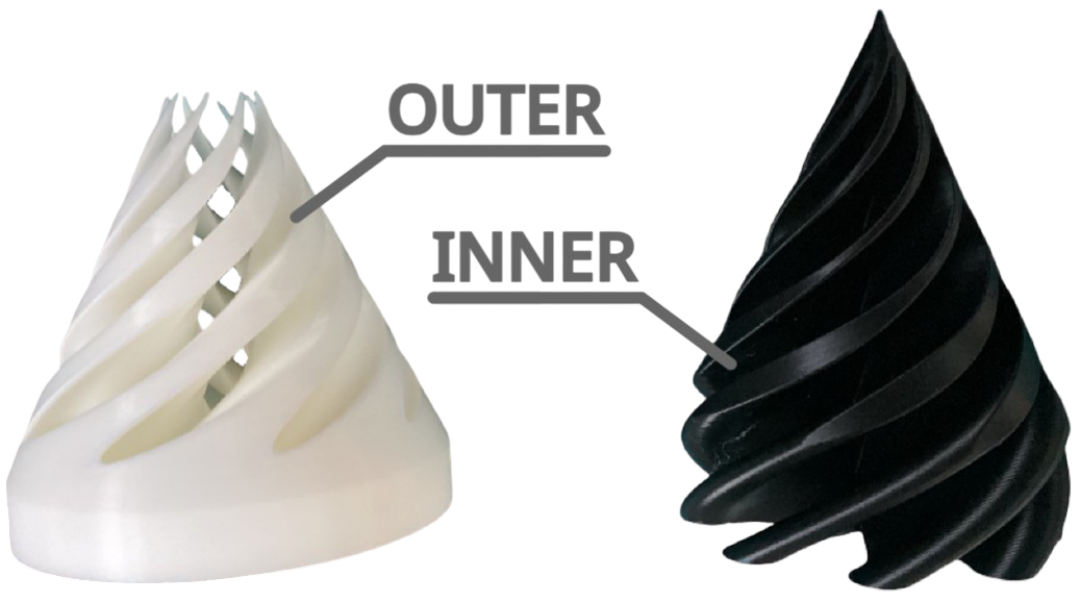 Two 3D-printed cones that can pass through each other